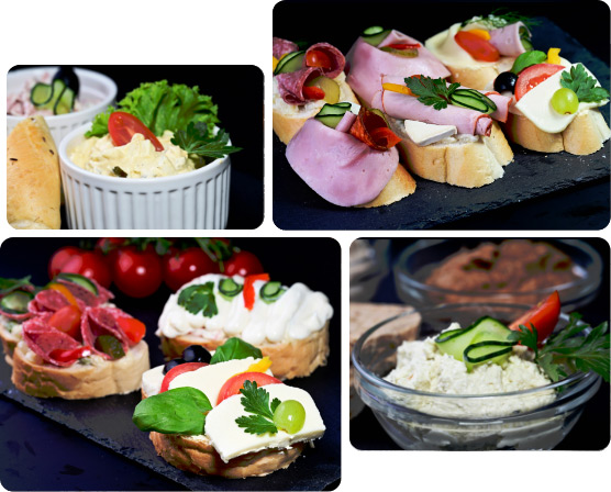 Na objednávku Vám také připravíme chlebíčky na másle, pomazánkovém másle, pochoutkovém či pařížském salátě, nebo pouze zeleninové.
